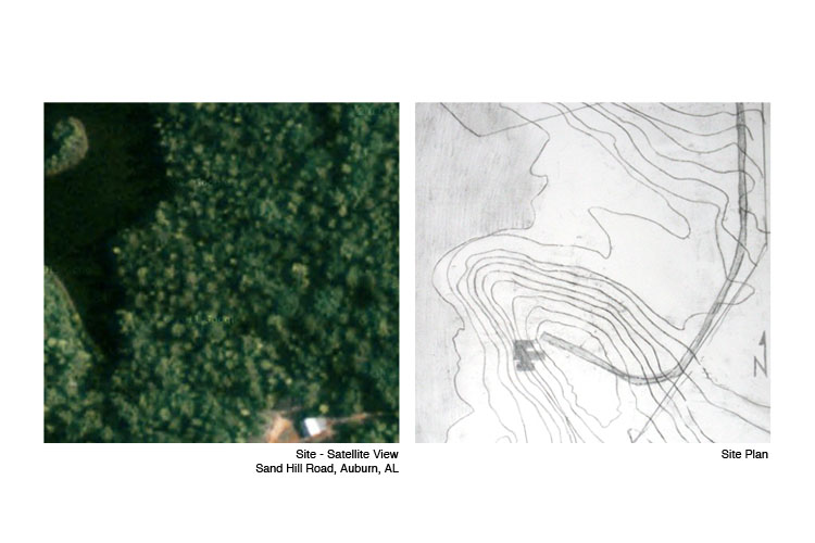 For this project, studio members were required to create hypothetical clients and their everyday needs/routine. For these clients, students were asked to develop two residential proposals- one in a rural setting and another in an urban setting. The client profile I developed for this project was a young family of three, with one spouse working as a musician and the other as a historian. Their work includes research, teaching, recording, and performance. The family has recently relocated to Lee County, AL, and wishes to see proposals for a residential and work space in two possible locations: 1) 8 acres of land in rural Lee County, and 2) a vacant lot in downtown Opelika, AL.